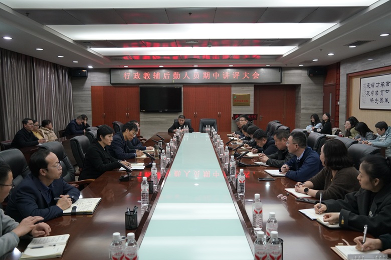 为评估行政教辅后勤工作成效,总结校庆筹备经验,2025年11月25日下午,我校召开行政教辅后勤人员期中讲评大会。副校长胡杰、左宏莉及全体行政教辅后勤人员参会。会议由副校长薛党鹏主持。