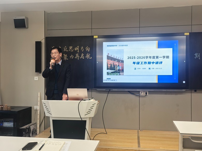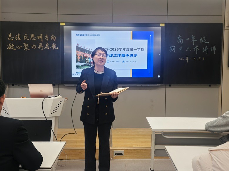 11月25日,高一年级召开期中工作总结会议。副校长胡杰、年级部副主任白富东及全体高一教师参会,会议由年级部主任马云云主持。