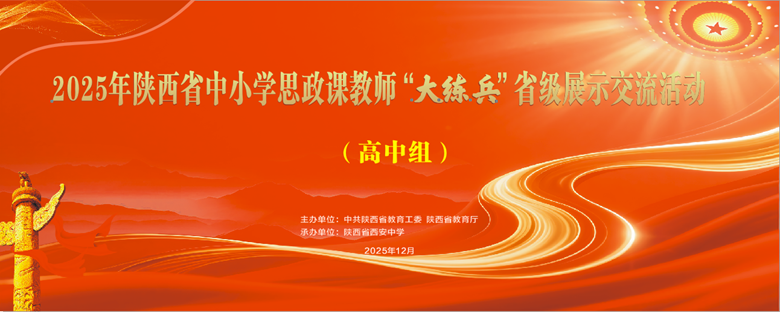 为深入贯彻落实习近平总书记关于学校思想政治工作的重要论述,充分发挥思政课立德树人主阵地作用,扎实推进高中思政课教师队伍建设,弘扬社会主义核心价值观,12月5日,2025年陕西省中小学思政课教师“大练兵”省级展示活动(高中组)在陕西省西安中学成功举办。本次活动由陕西省教育厅主办、陕西省西安中学承办,来自全省各地的近百名教师同台竞技、以赛赋能,40名省级名师评委现场评审,共同打造了一场兼具专业性、实践性与创新性的思政教育盛宴。