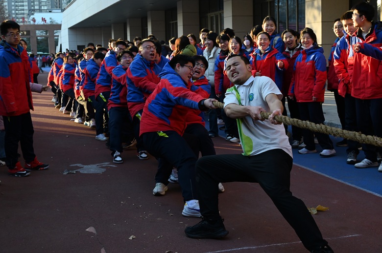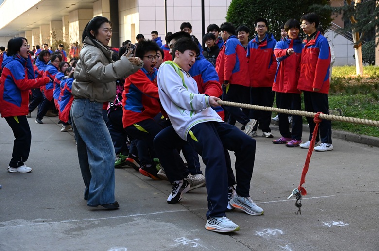 在复习备考的关键阶段,高三年级为引导学生劳逸结合、舒缓压力,以更饱满的精神状态迎接挑战,特意组织了拔河比赛与跑操评比集体活动。