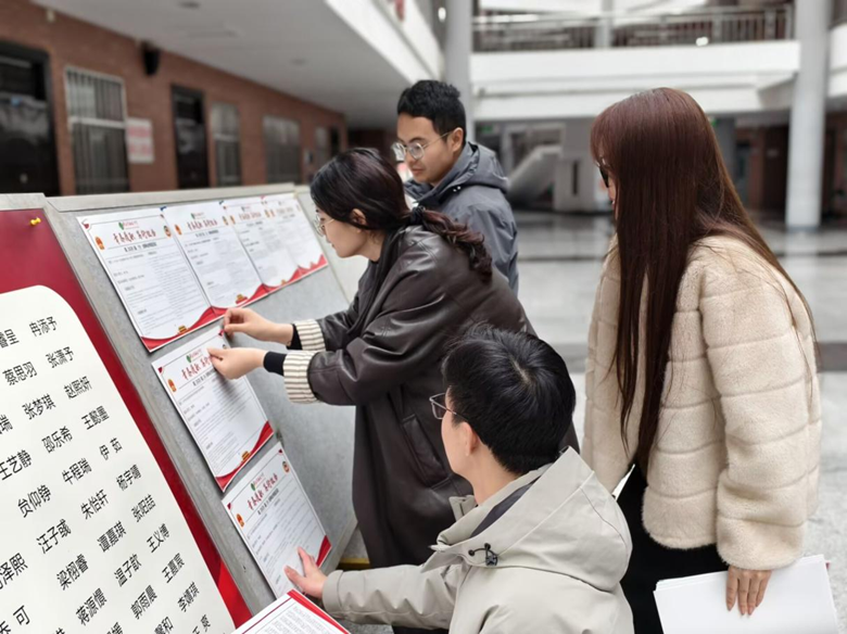 小报展览期间,同学们驻足观看、交流探讨,在赏析创意作品的同时,进一步深化对两会知识的理解、拓宽时政视野,营造了“人人学两会、人人谈两会、人人践精神”的浓郁校园氛围。