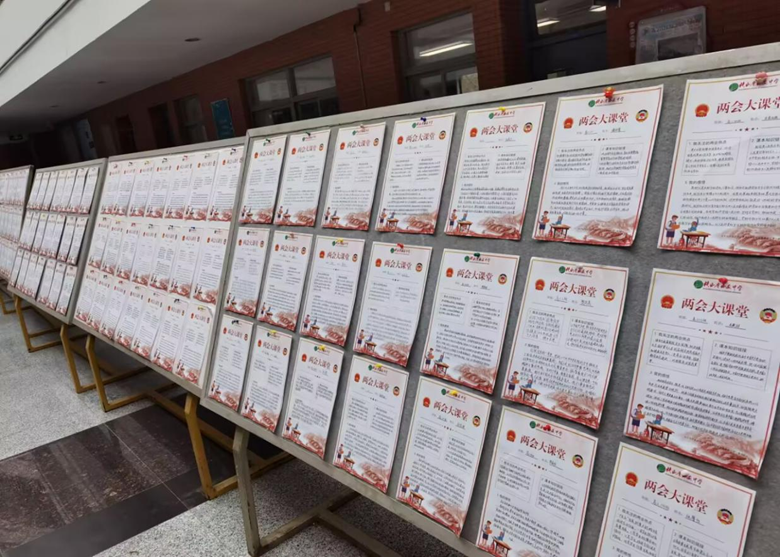 与此同时,“两会大课堂”知识链接小报展览活动同步开展,成为校园里一道亮丽的风景线。同学们踊跃参与、精心创作,充分发挥创造力与表现力,围绕两会热点内容链接课本知识,分享自身学习感悟与时代思考。