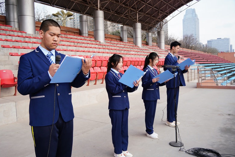 高一18班学生代表为全校师生做校会演讲。他们结合同学们的日常生活进行真诚分享,从"让有序成为习惯"到"让规则成为本能",从守护心灵安全到关注舌尖安全,每一条倡议都发自肺腑、贴近日常。安全不是口号,它就藏在上下楼梯时放慢的那一步里,藏在实验课上多确认的那一眼里。全体同学要将安全意识融入日常学习生活的点滴之中,严格遵守校规校纪,主动排查身边隐患,争当校园安全的践行者、守护者,切实担负起自身安全的第一责任。