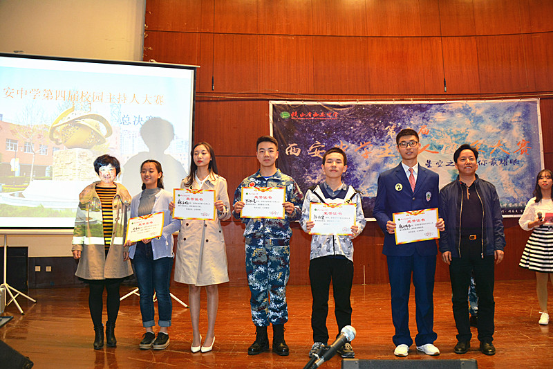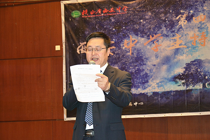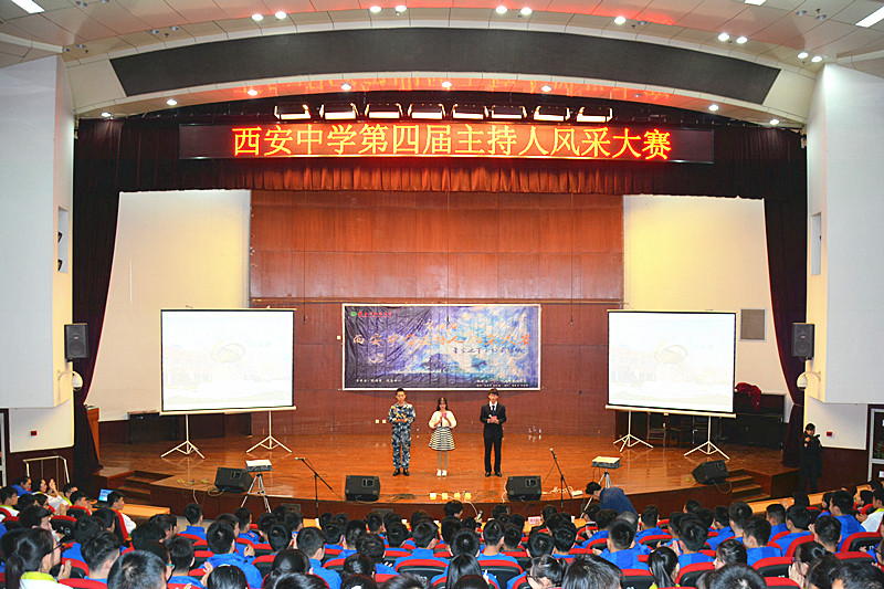 3月28日晚,经过班级推选、年级初选,我校第四届校园主持人大赛决赛在艺术中心报告厅拉开序幕。校党委樊世杰书记、团委黎建军副书记、高二年级部杨毅副主任、高一年级部饶春燕副主任莅临现场,王亚钧老师、樊红斌老师、李金老师、安秀萍老师,特别邀请陕西电 视台主播唐煜先生共同担任本次大赛的评委。整场赛事竞争激烈,气氛活跃,十二位选手尽显风华,蓬勃飒爽。
